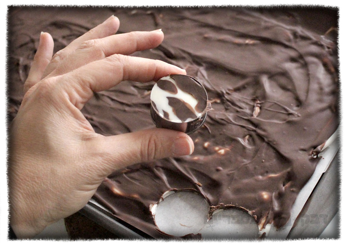 When your chocolate hardens cut out round coins using the circular cookie cutter.