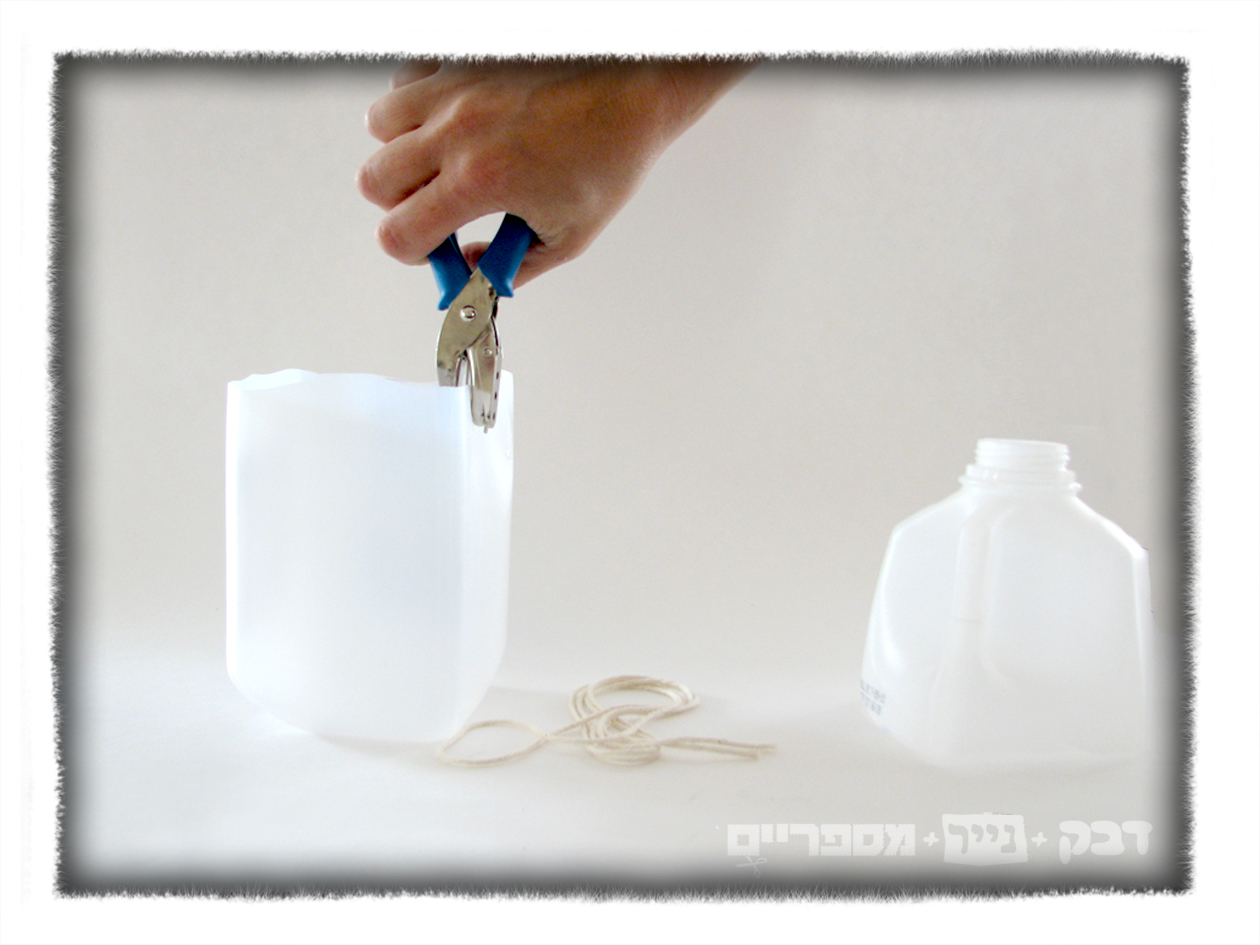 hole punch on either side and tie some rope to form a handle.